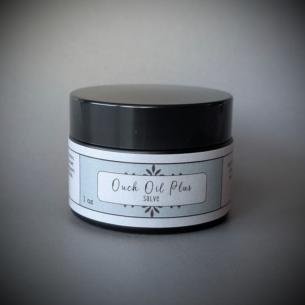 Massage Ouch Oil into sore muscles, bruises, achy joints, cuts, scrapes, or inflamed tissue to ease discomfort and support natural healing.